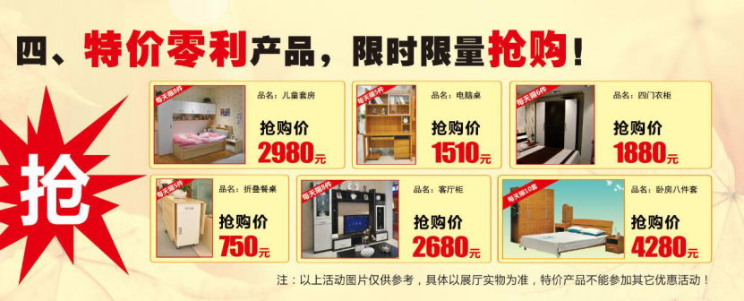 特价卧房8件套:4280元,限量抢购!(特价产品为标准产品,不改型不定 制,不参加其它任何优惠活动!)