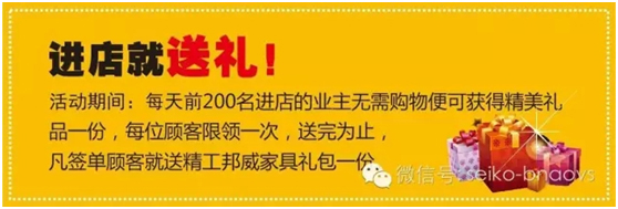活动期间:签单就送精工邦威大礼包;
